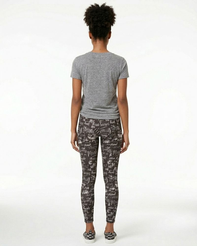 First Looks’ ultra-soft leggings Kiss Script print that looks fresh.