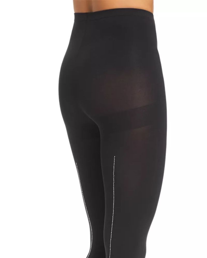 Rhinestone studs trace a sparkly line up the back of sleek fashion tights from HUE.