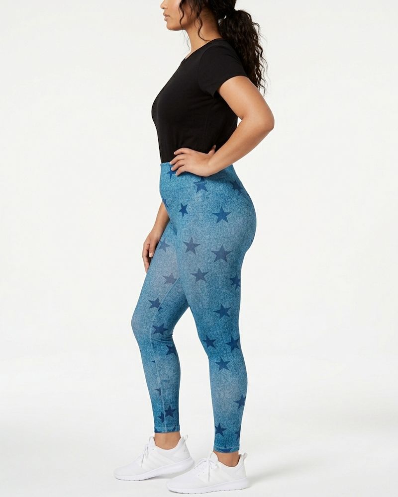 First Looks’ ultra-soft leggings steal the spotlight in a star and denim print that looks fresh.