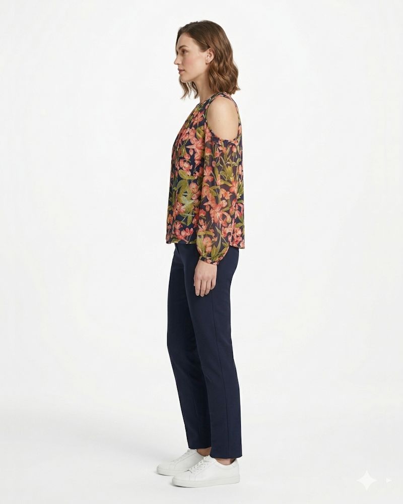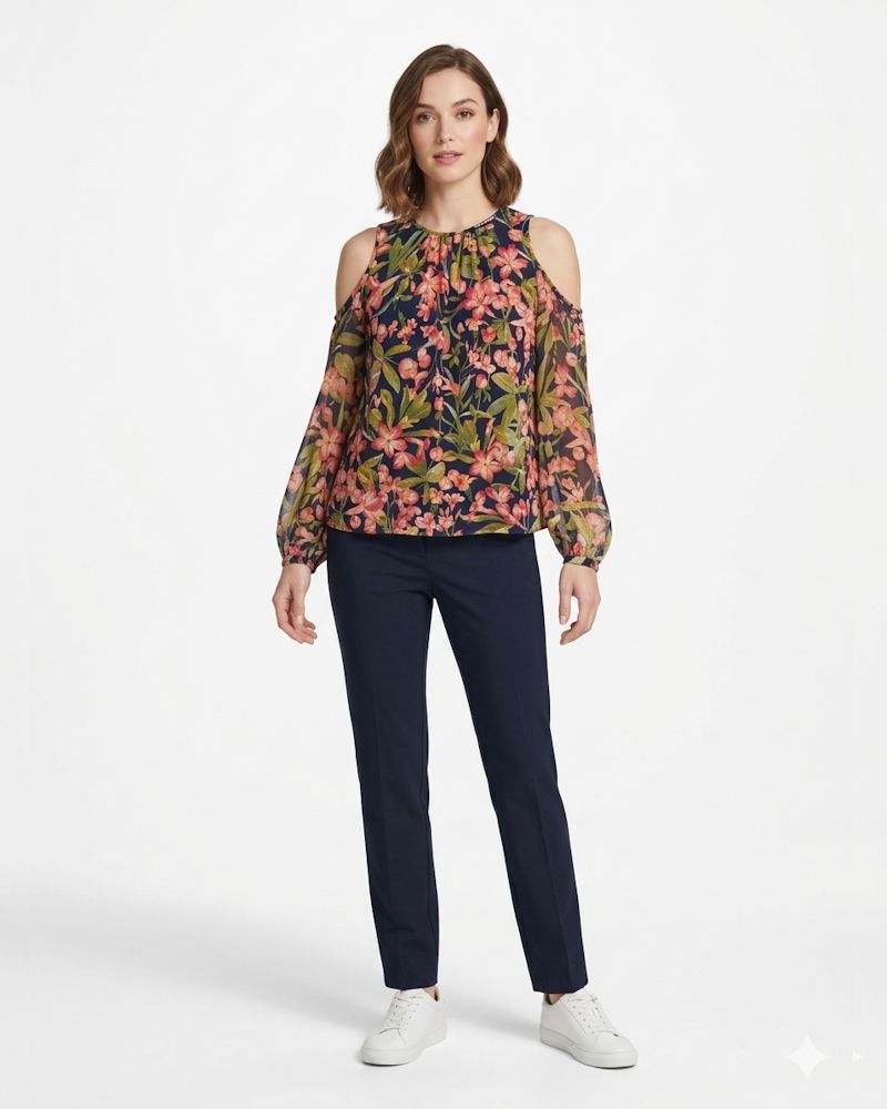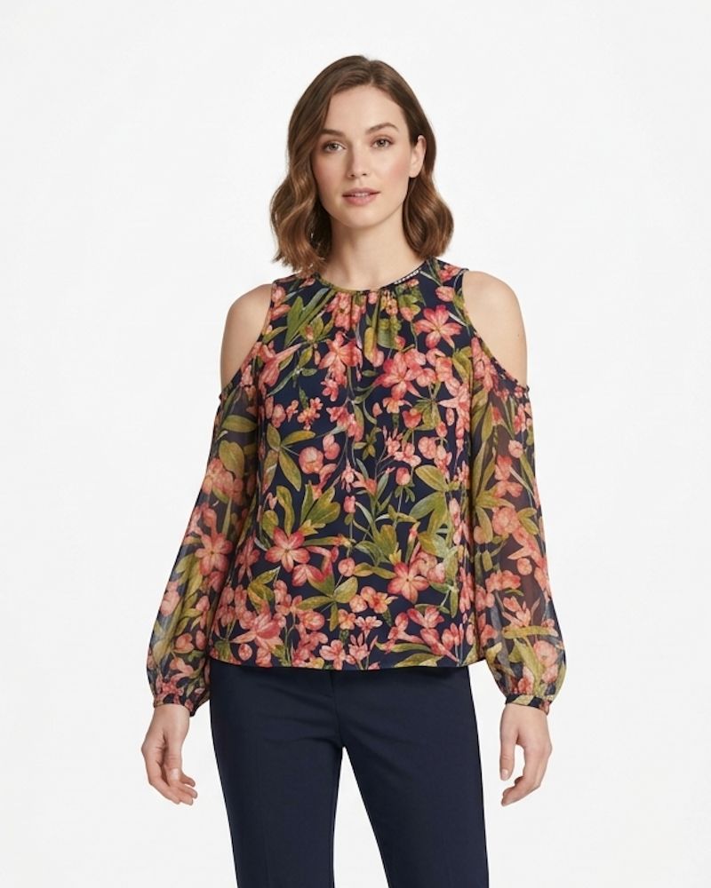 Classic charm with a contemporary feel. This sweet off-the-shoulder top from Karl Lagerfeld Paris features ruffled details and a Floral print.
