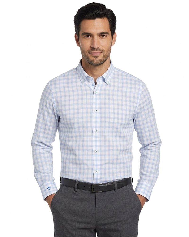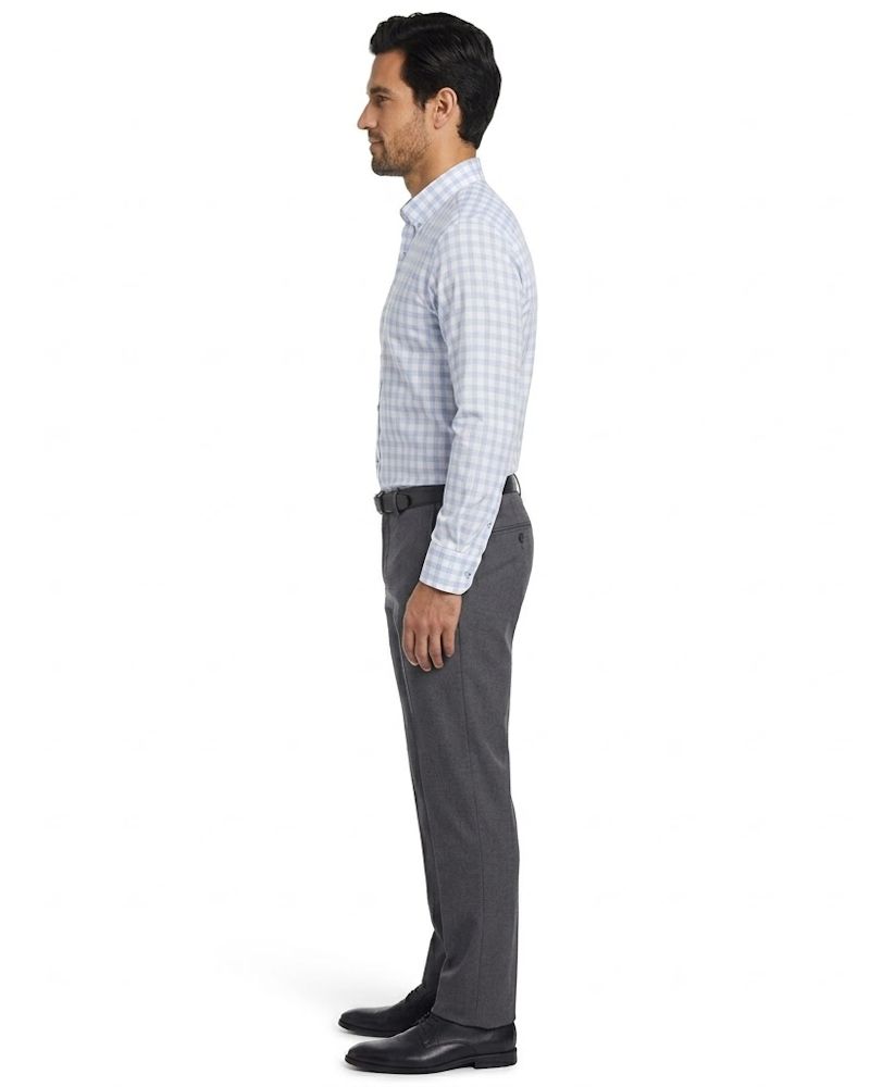 The brisk-tone check pattern and short button-down collar of this Heritage dress shirt by Original Penguin lend it a refreshing, casual character that is balanced in a comfortable way by its slim-fit design and soft stretch cotton finish.